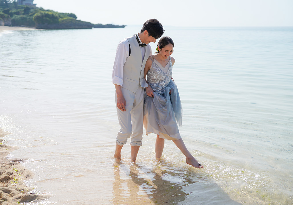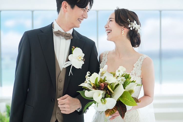 純⽩のチャペルと、沖縄ブルーが織りなす特別なワンシーンを